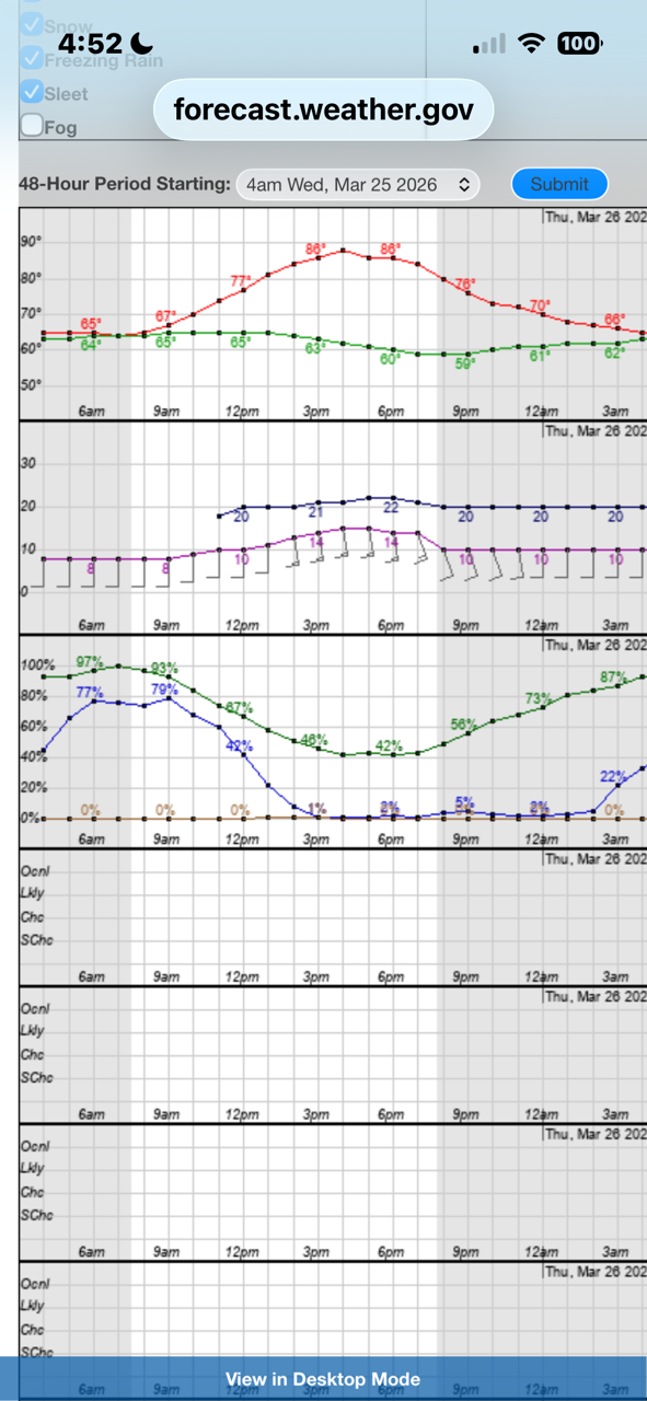 Sky Condition: Fully greyed over skies with varying levels of thickness throughout the morning, quickly clearing to just 20% white clouds on a blue sky right at 10A.