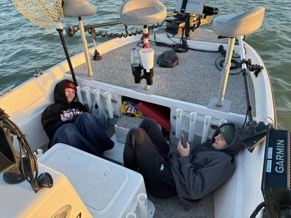 I was quite impressed that the two of them, arriving separately, both showed up about 20 minutes early. Punctuality seems to have lost its importance in this day and age, but not for these two youngsters. We experienced a full four hour bite this afternoon after a full four hour bite this morning. This afternoon‘s bite was definitely not as strong as the morning bite, and we did not see the sunset blitz that often takes place under warmer conditions.