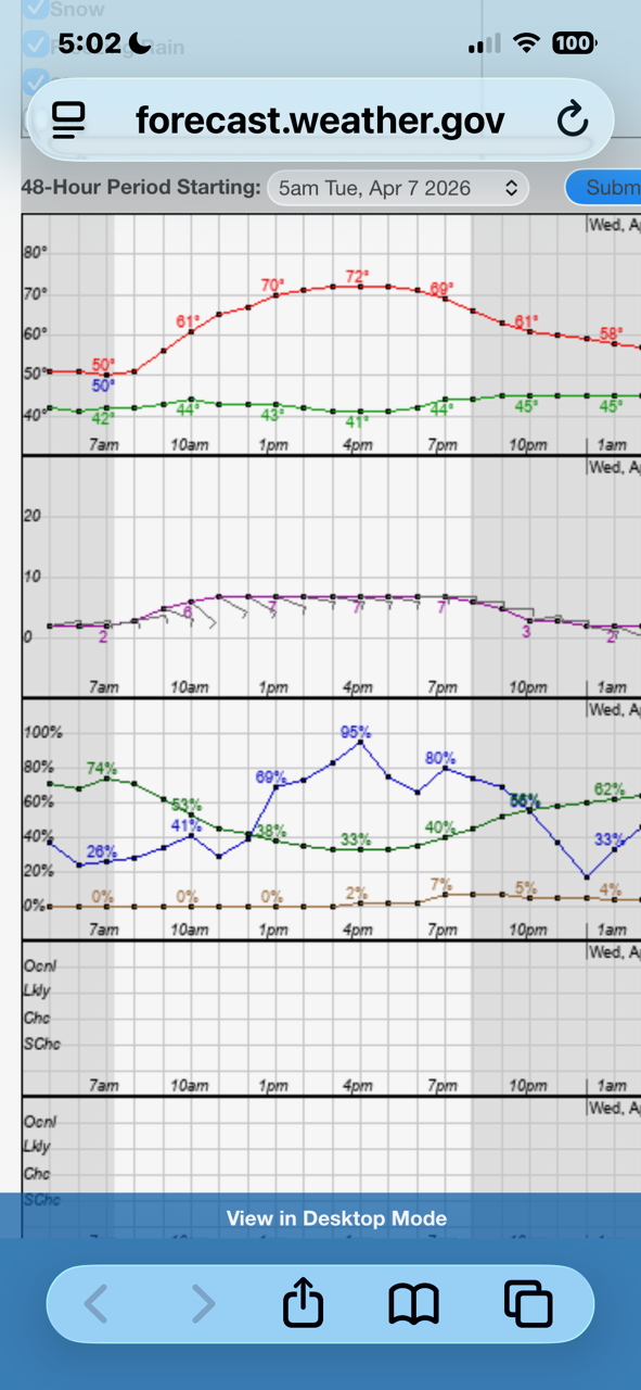 Wind Speed & Direction: Calm through 9:35, then picking up quickly to E13.