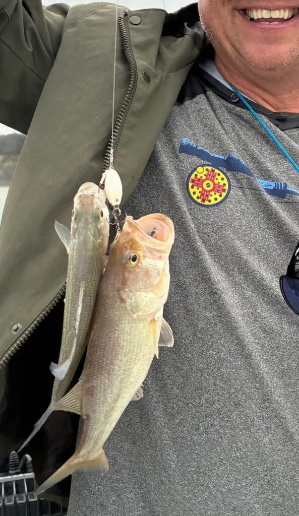 In this manner, father and son landed 87 white bass, 1 hybrid, striped bass, and 1 small largemouth bass and right at four hours’ time.